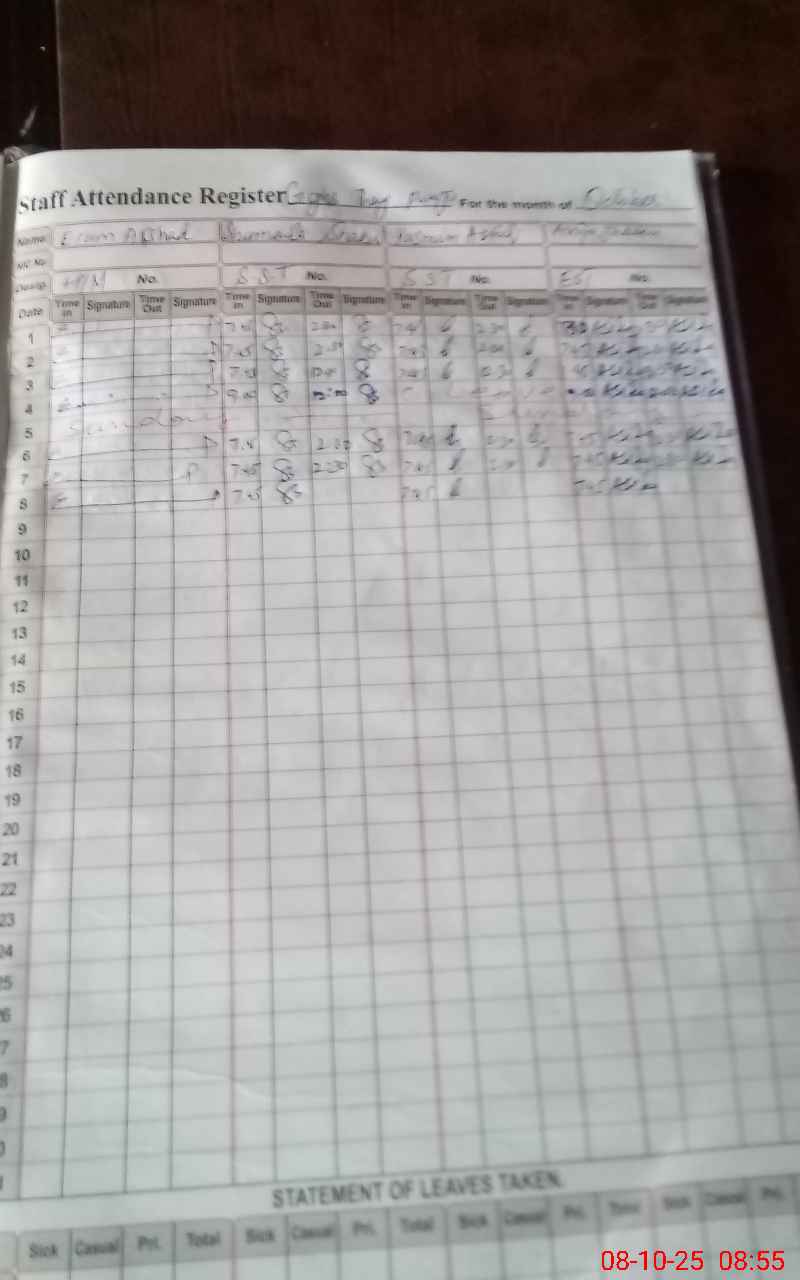| 00**** | An**** Ak**** | JC | Regular | 2 | 0 | 0 | 0 | 0 | 0 | 0 | 0 | 2 | Absent (Un-Authorized) |