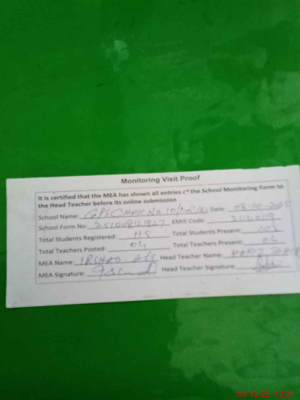 | EMIS Code: 31140119 | Name of School: GPS CHAK NO 10/1-R E | |||