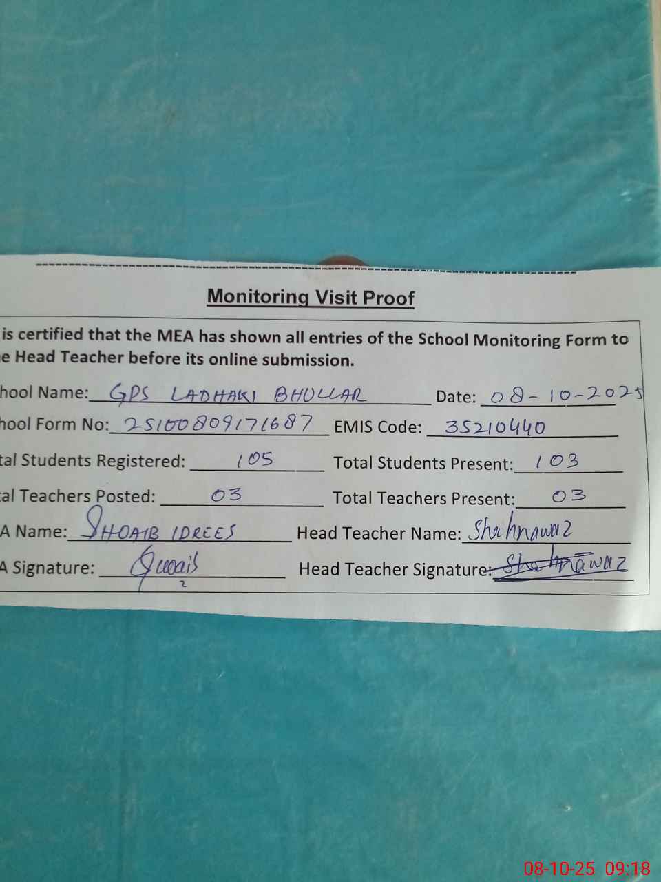 | EMIS Code: 35210440 | Name of School: GPS LADHAKI BHULLAR | |||