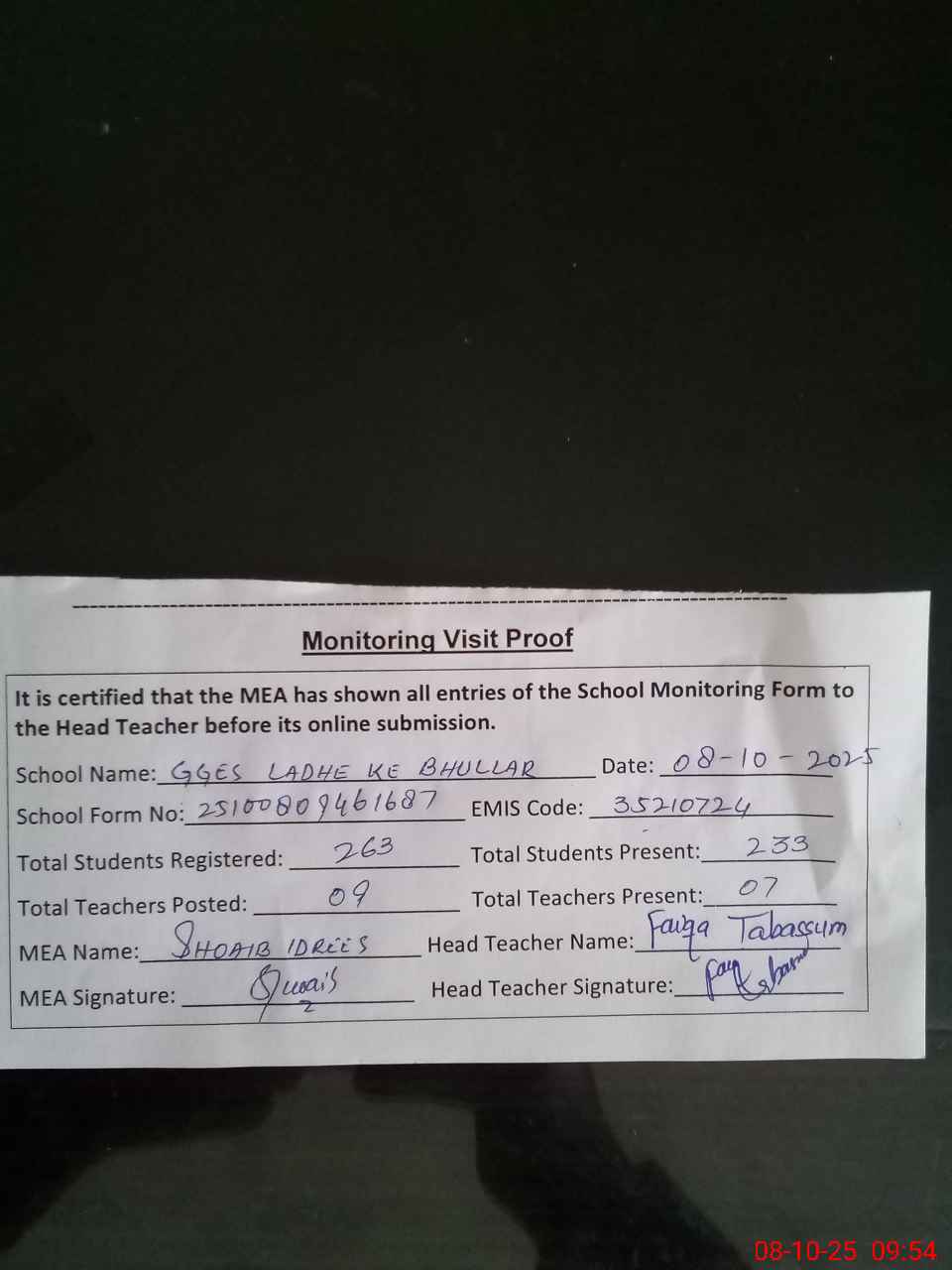 | Certified that this School was Inspected by the Undersigned MEA/DMO Today and the Information Stated Above is as Per Record. | |||||