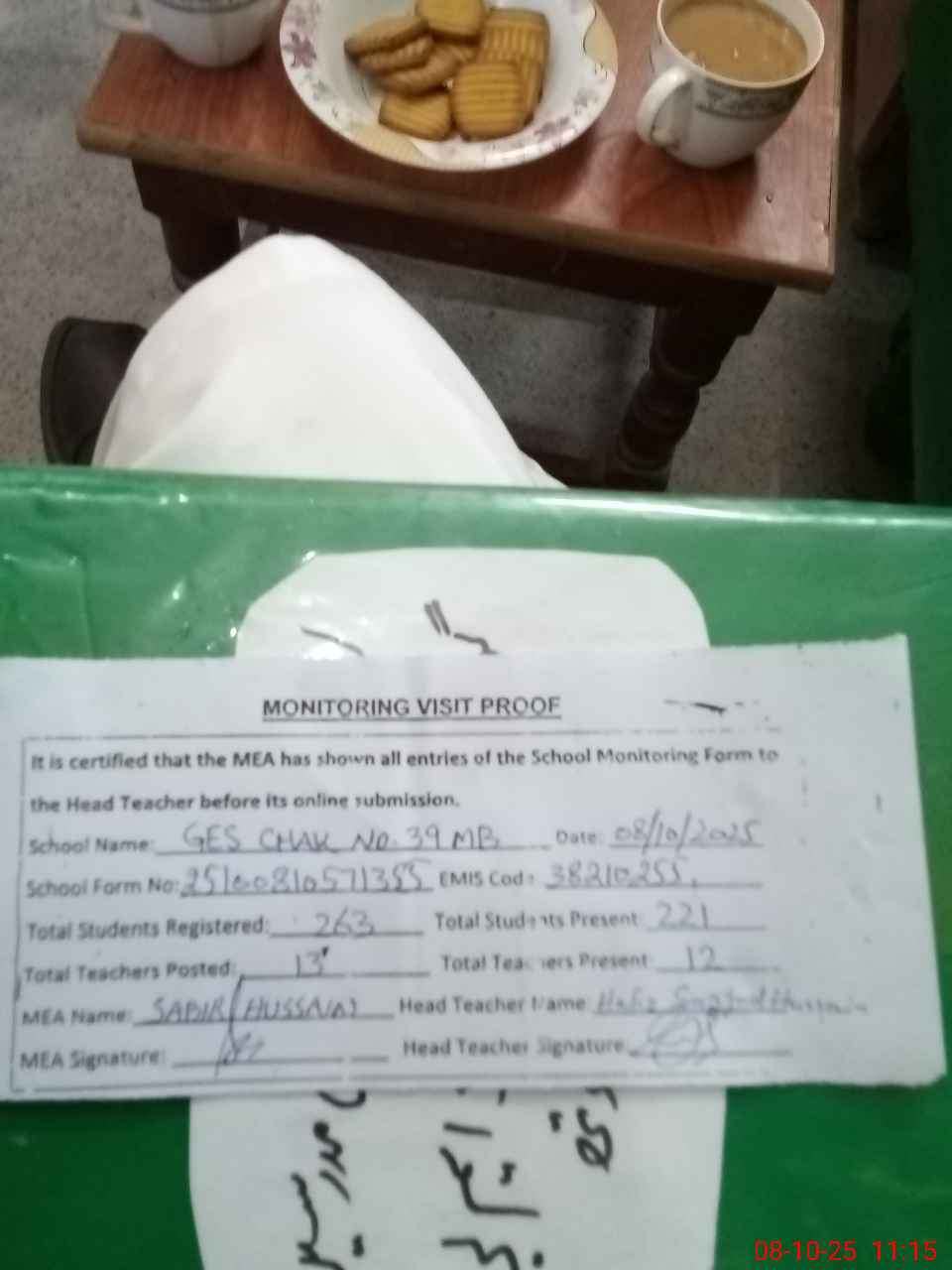 | EMIS Code: 38210255 | Name of School: GES CHAK NO 39 MB | |||