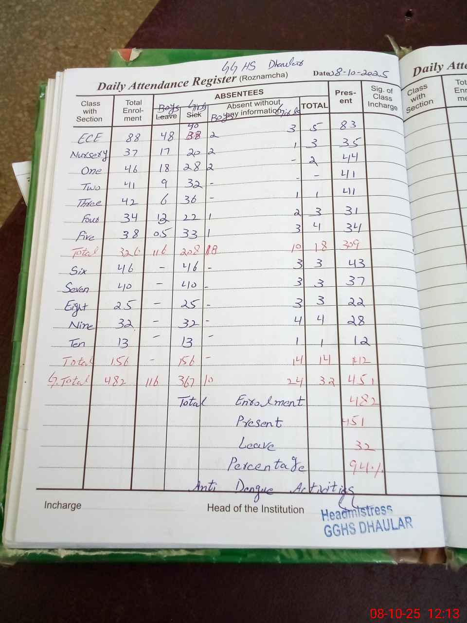| ECE | Un-admt | K | 1 | 2 | 3 | 4 | 5 | 6 | 7 | 8 | 9 | 10 | Total | |||