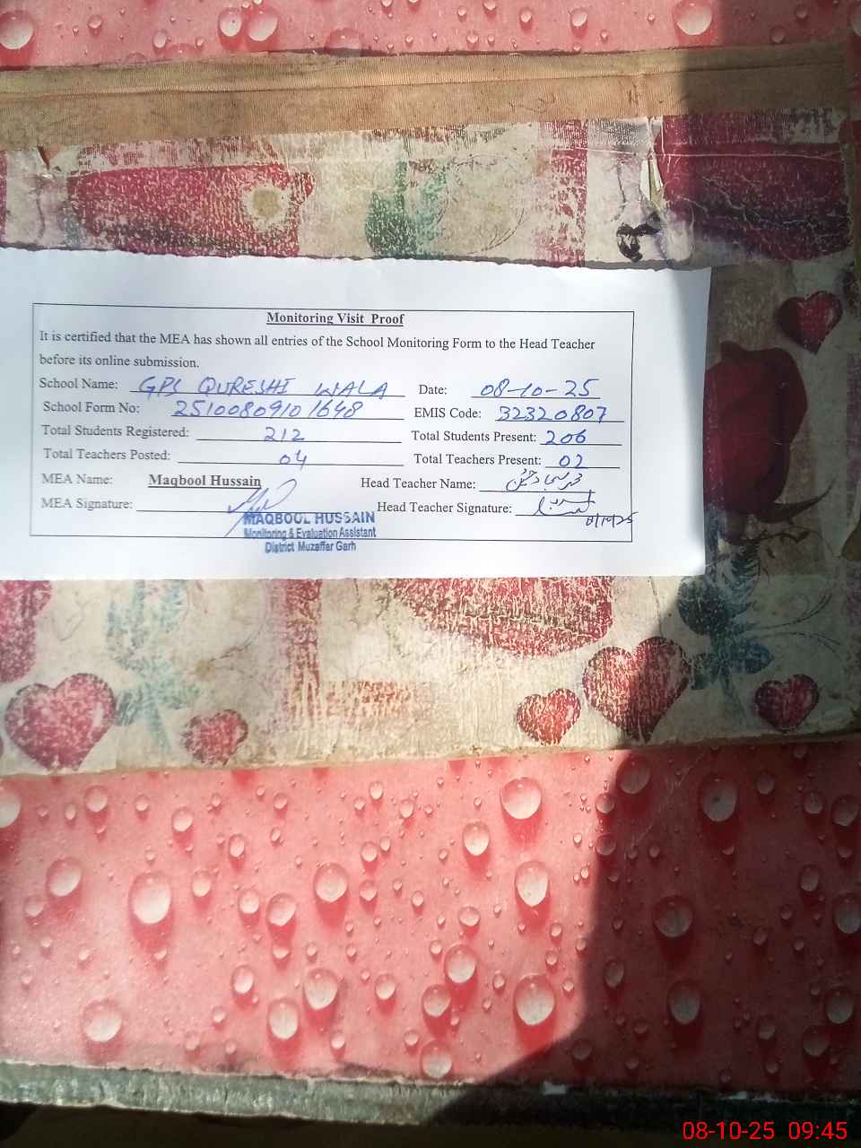 | EMIS Code: 32320807 | Name of School: GPS QURESHI WALA | |||