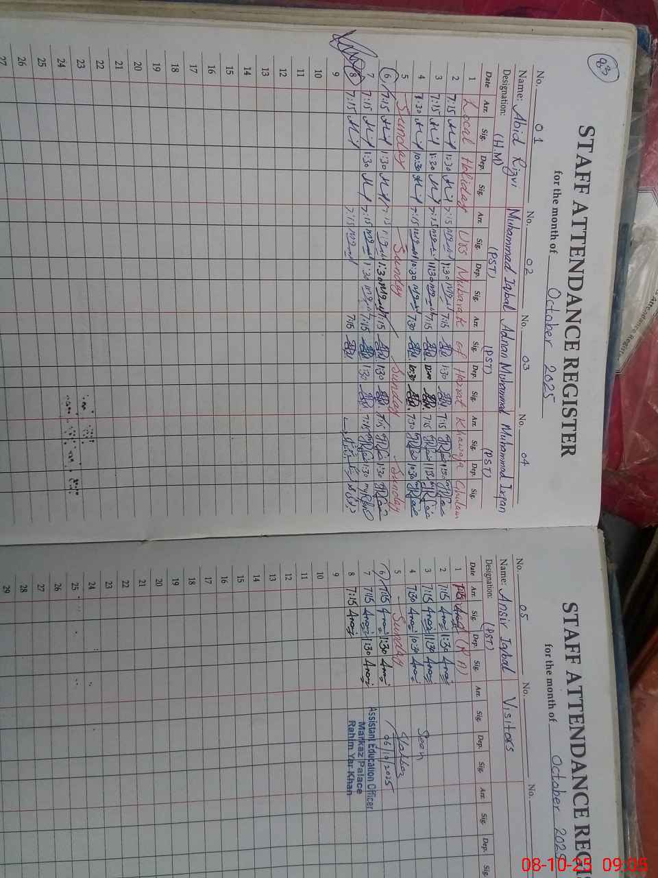| Monitoring Date: 08-10-2025 | Start Time: 08-10-2025 08:01 AM | End Time: 08-10-2025 09:12 AM | Name of MEA: Za**** Ah**** | |