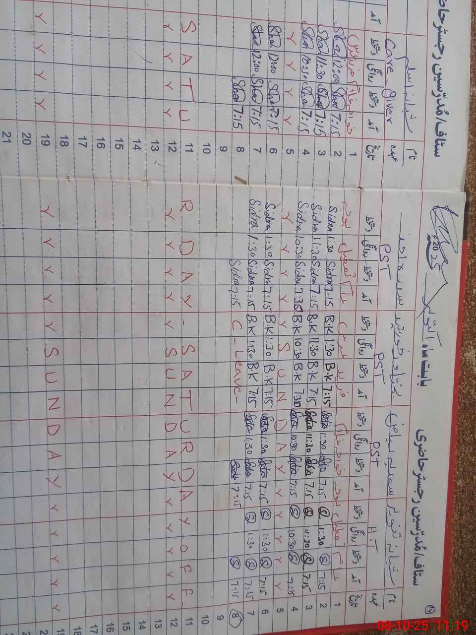 | CNIC | Full Name | Designation | R/C | Absence during last cal. month |