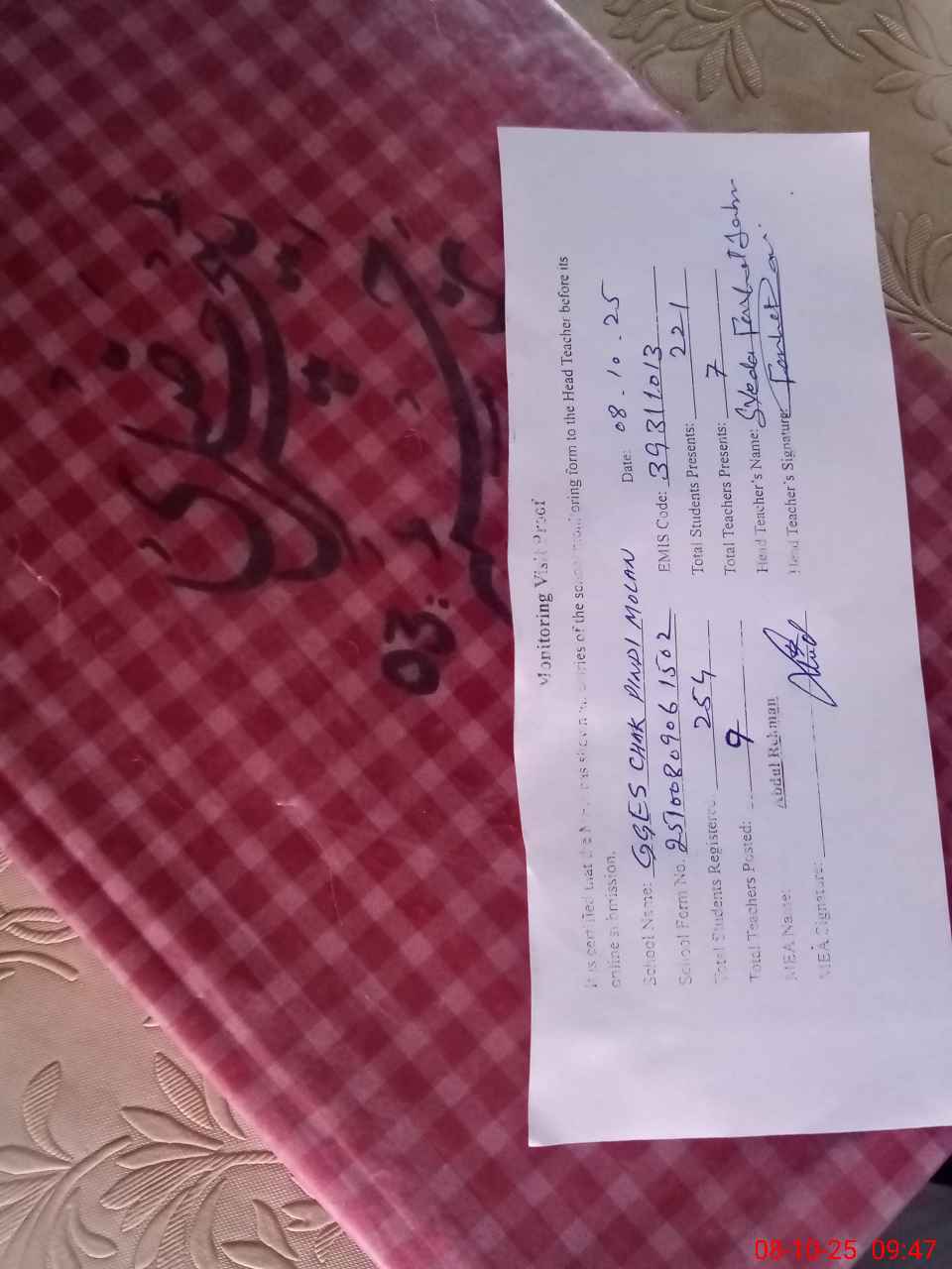 | EMIS Code: 39311013 | Name of School: GGES CHAK PINDI MOHLAN | |||
