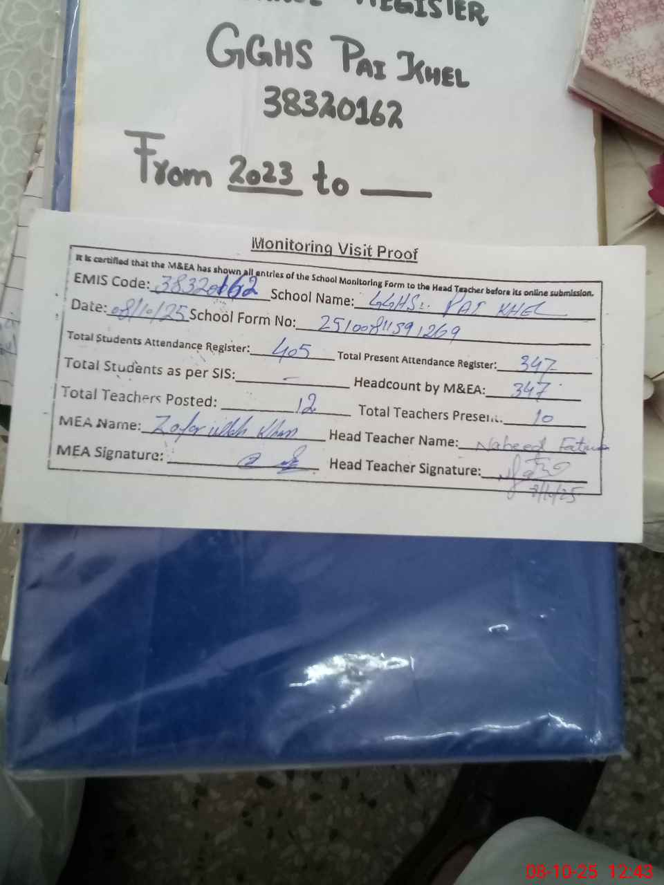| EMIS Code: 38320162 | Name of School: GGHS PAI KHEL | |||
