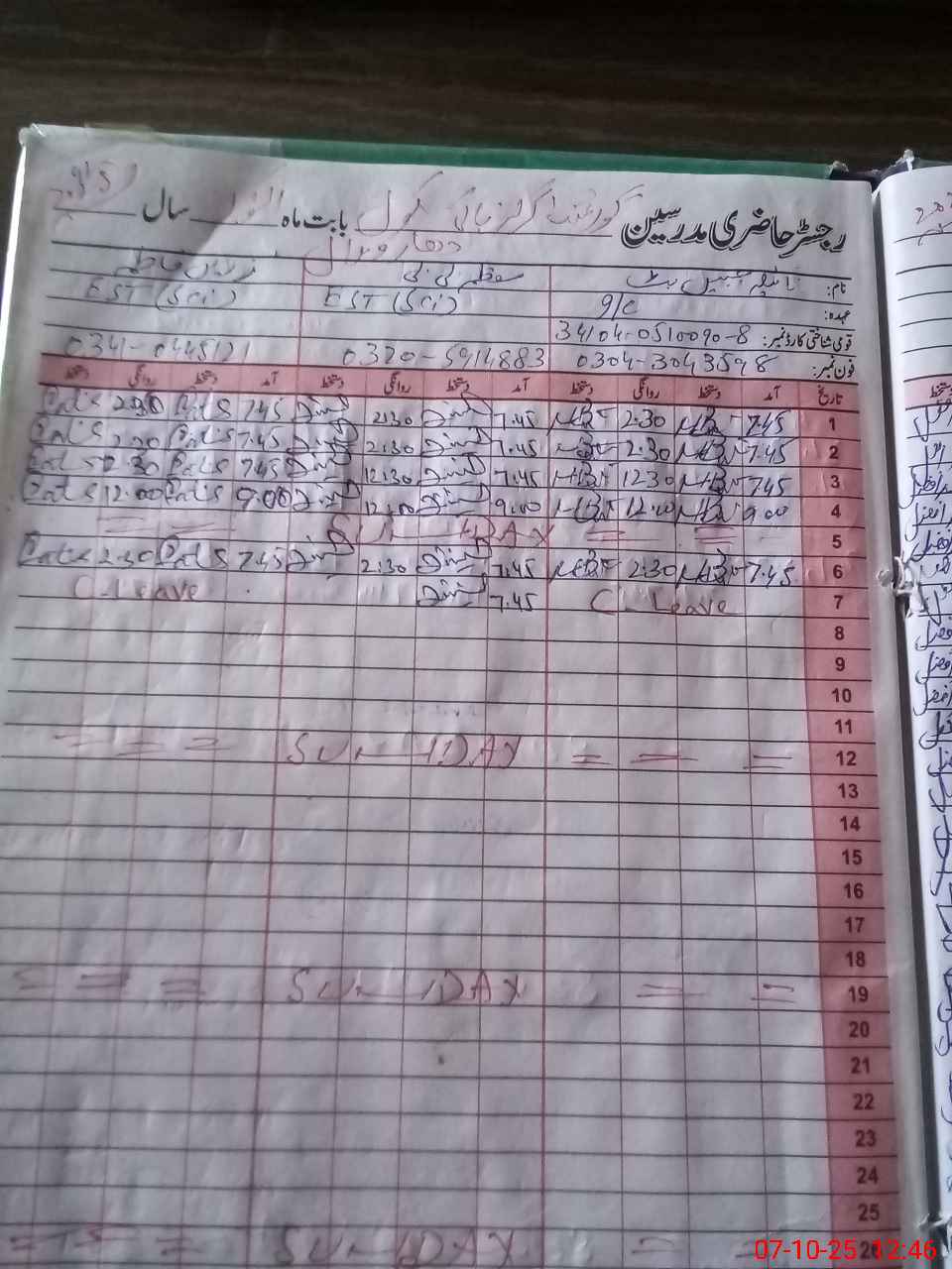 | Name: NA**** JA**** Designation: (School Headmaster's/Headmistress's) S.S.T.(Arts) Phone/Cell Number: 03**** |