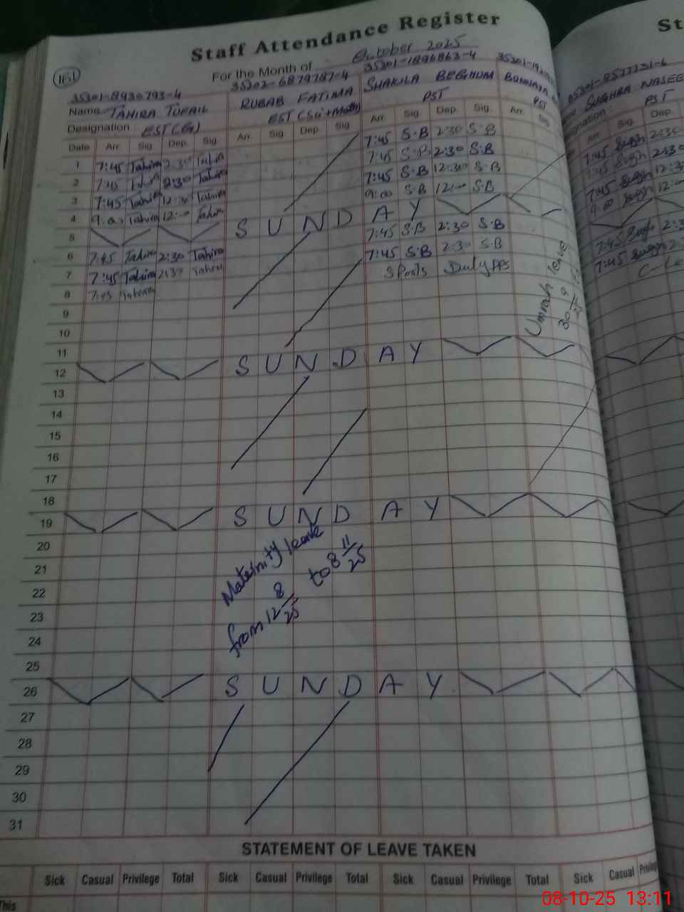 | 35**** | Mu**** Ta**** | CHOCKIDAR | Regular | 2 | 0 | 0 | 0 | 0 | 0 | 0 | 0 | 2 | Casual |