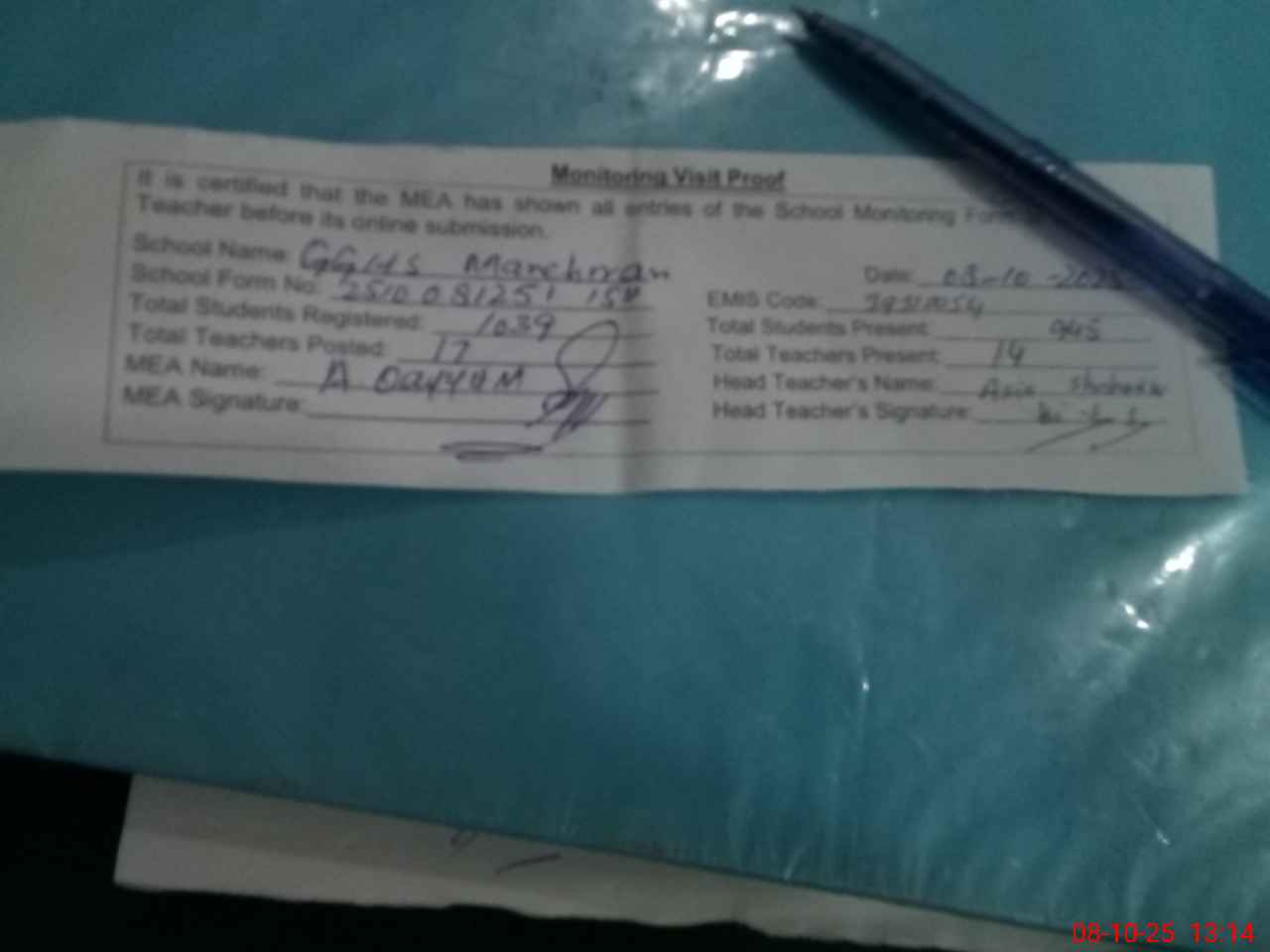 | EMIS Code: 39310054 | Name of School: GGHS MANCHARIAN | |||