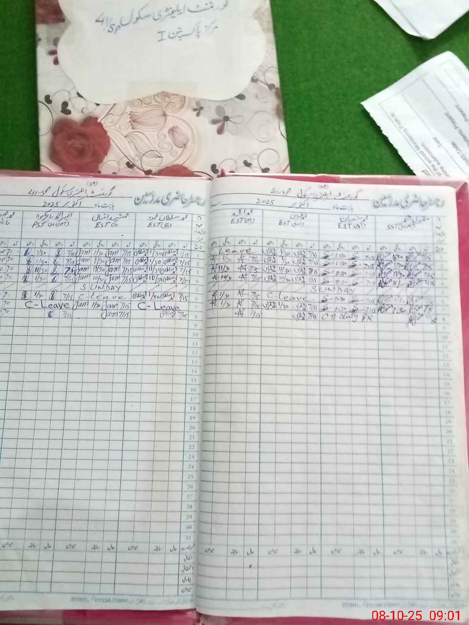 | CNIC | Full Name | Designation | R/C | Absence During Last Calender Month |