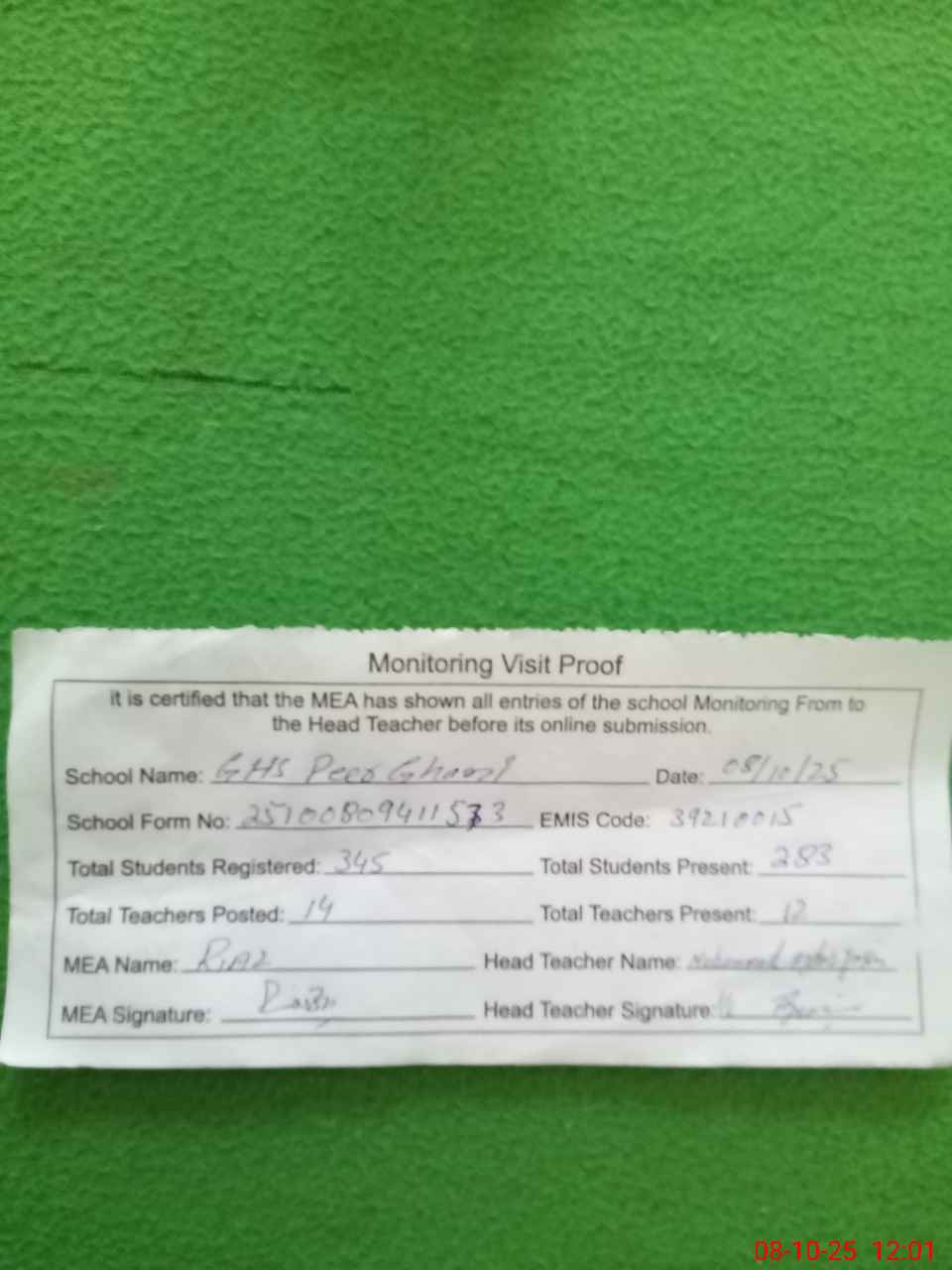 | EMIS Code: 39210015 | Name of School: GHS PEER GHANI | |||