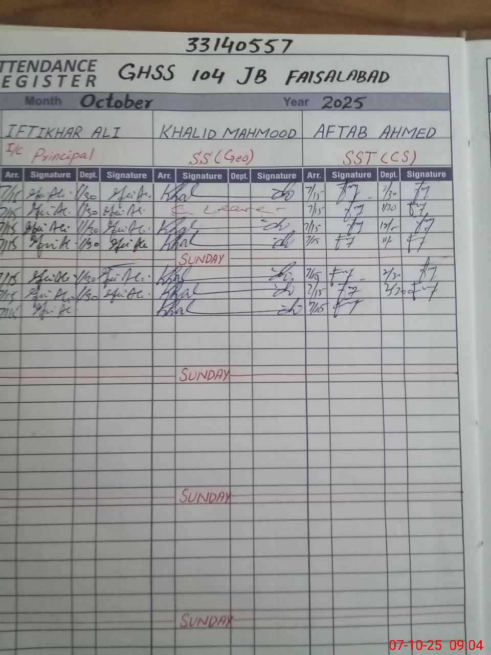 | EMIS Code: 33140557 | Name of School: GHSS CHAK 104 JB FSD | |||