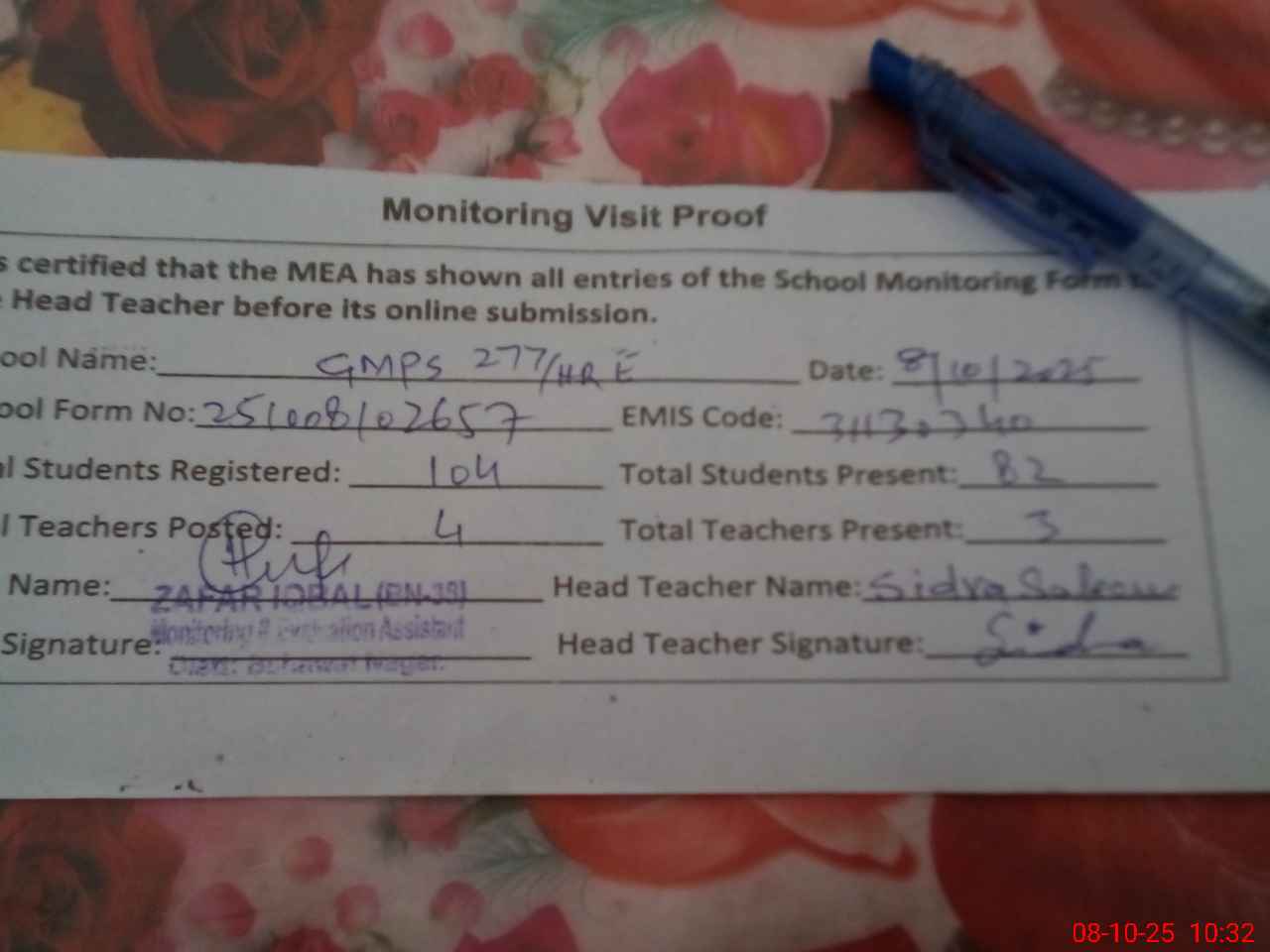 | EMIS Code: 31130340 | Name of School: GGPS CHAK NO 277 HR (E) | |||
