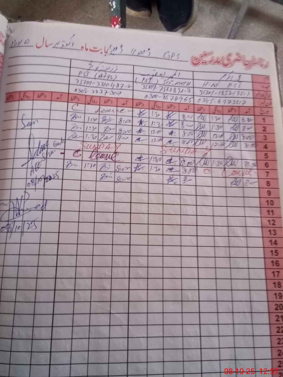 | Name: M.**** Designation: (School Headmaster's/Headmistress's) PST Phone/Cell Number: 03**** |