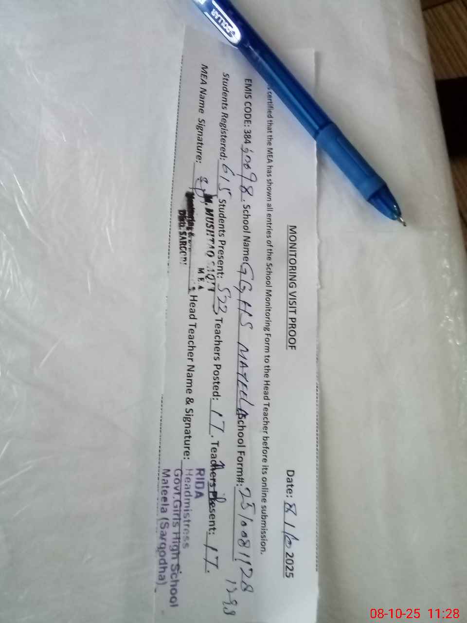| EMIS Code: 38460098 | Name of School: GGHS MATEELA | |||