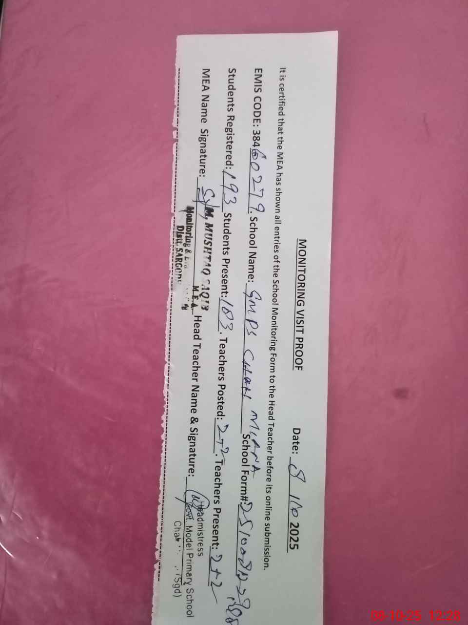 | EMIS Code: 38460279 | Name of School: GMPS CHAH MIANA | |||