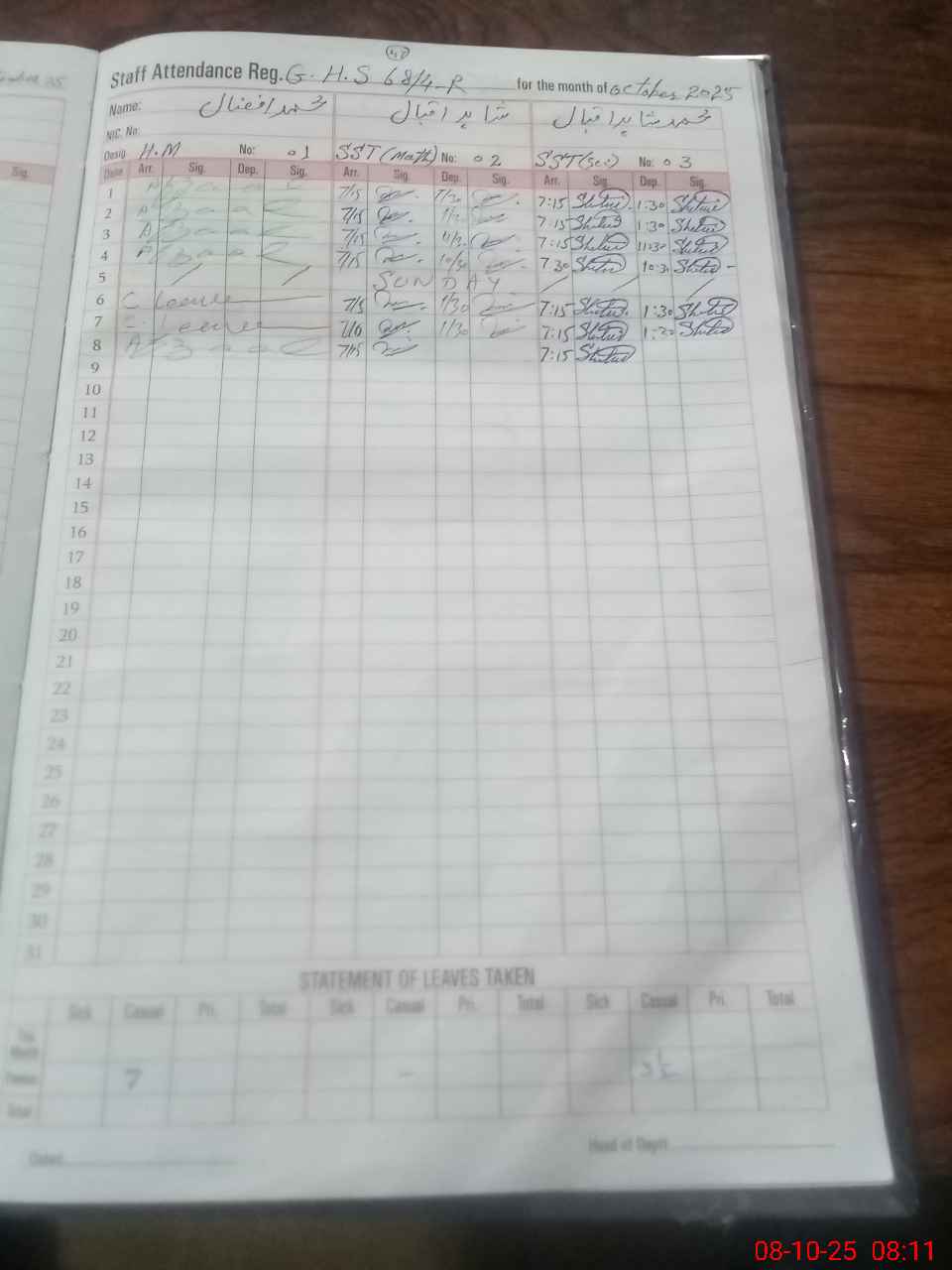 | 31**** | Kh**** Ak**** | EST | Regular | 0 | 0 | 0 | 0 | 0 | 0 | 0 | 0 | 0 | |