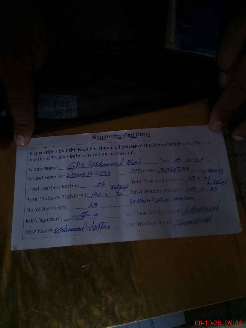 | EMIS Code: 31340735 | Name of School: GPS MUHAMMAD ABAD | |||