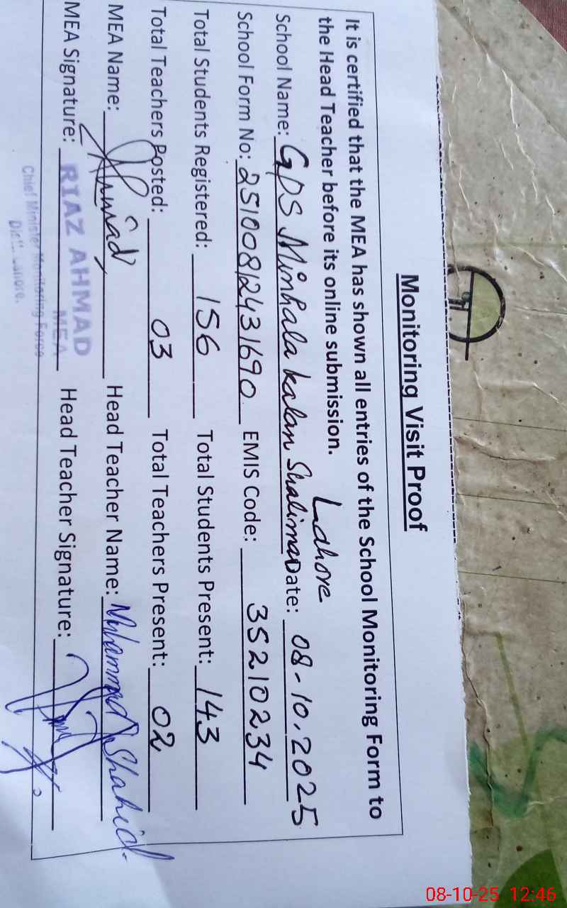 | EMIS Code: 35210234 | Name of School: GPS MINHALA KALAN | |||