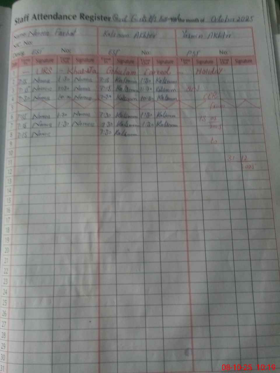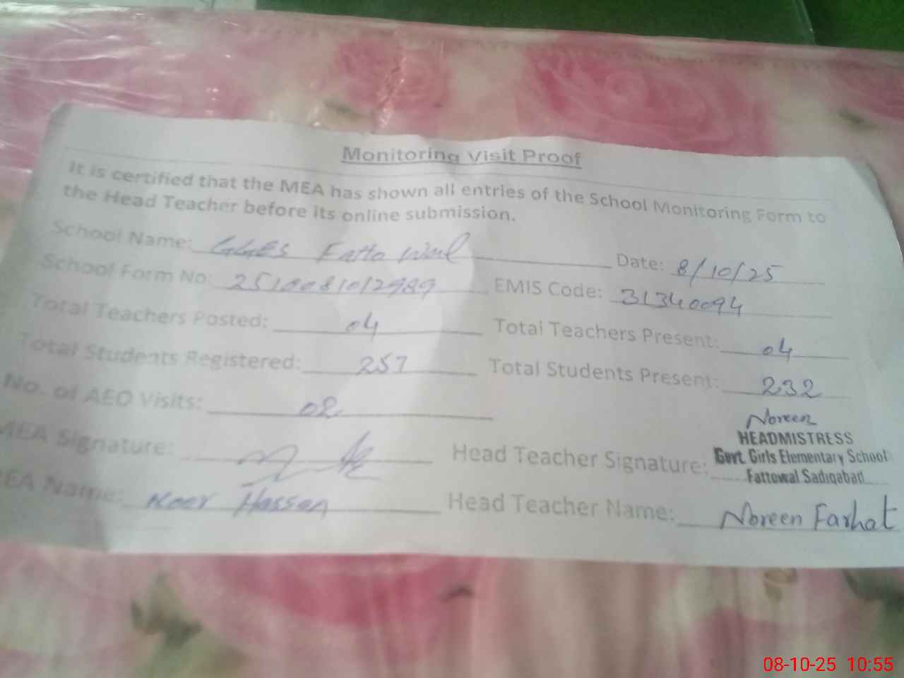 | Name: No**** Fa**** Designation: (School Headmaster's/Headmistress's) EST SCI Phone/Cell Number: 03**** |