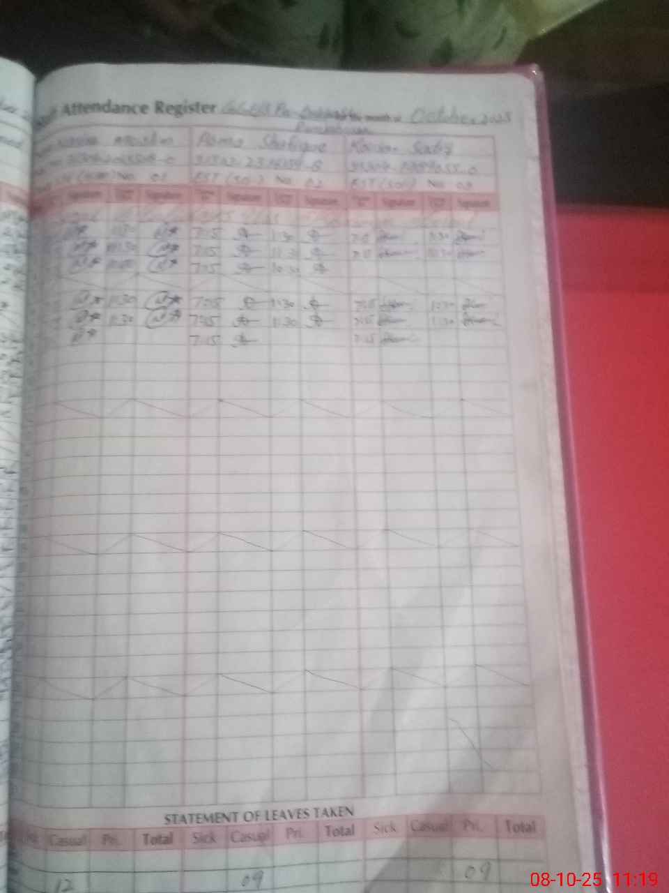 | CNIC | Full Name | Designation | R/C | Absence during last cal. month |