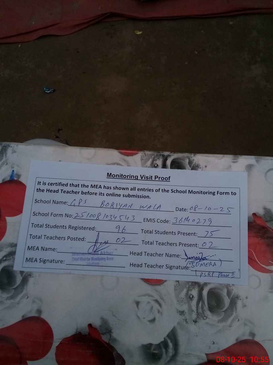 | EMIS Code: 36140279 | Name of School: GPS BORIYAN WALA JALALPUR | |||