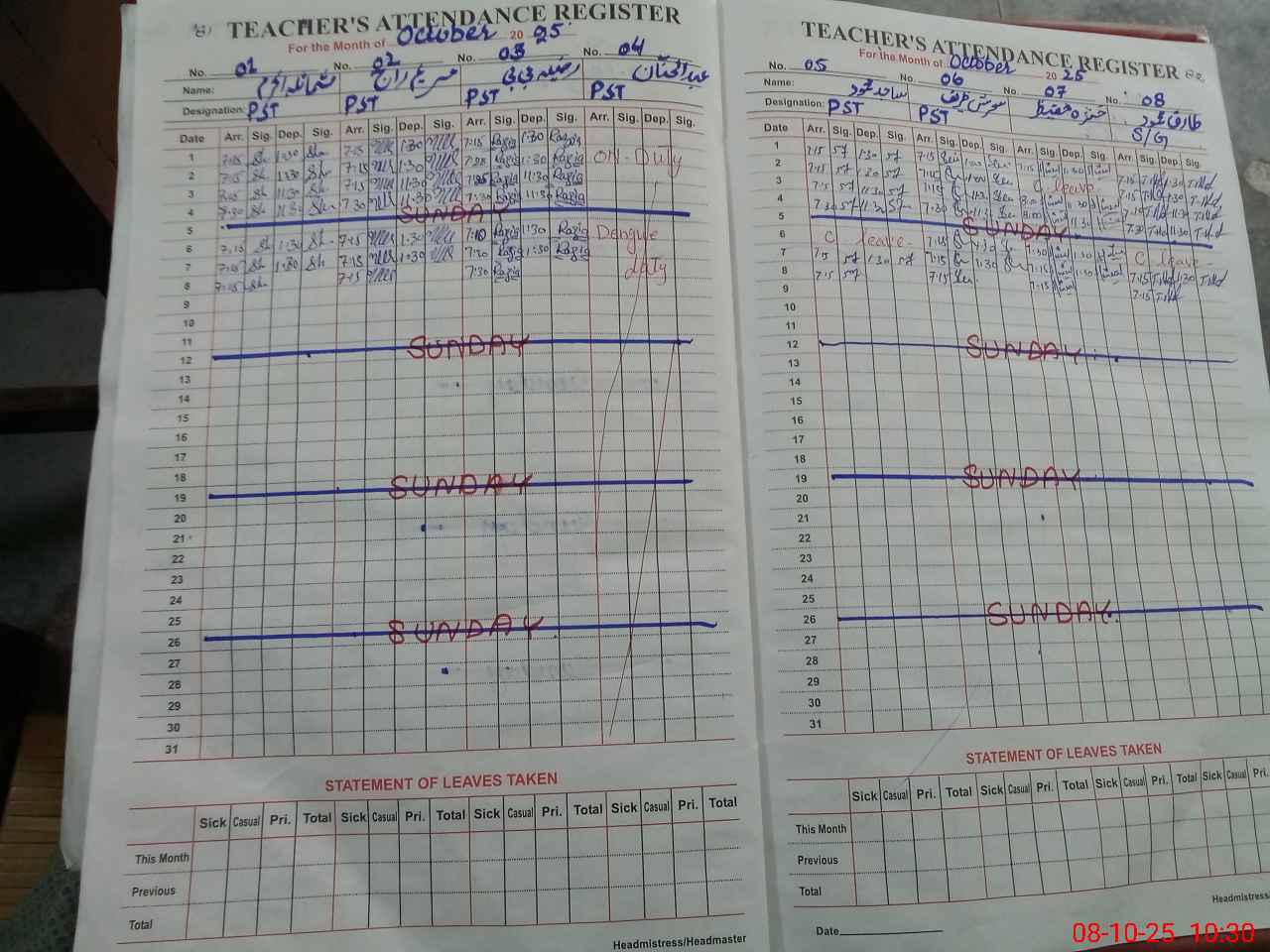 | 37**** | Mu**** Fa**** | N QASID | Regular | 0 | 0 | 30 | 0 | 0 | 0 | 0 | 0 | 0 | Absent (Un-Authorized) |