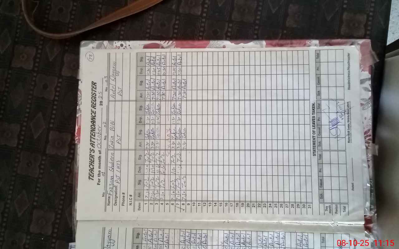 | Name: FA**** SH**** Designation: (School Headmaster's/Headmistress's) PST Phone/Cell Number: 03**** |