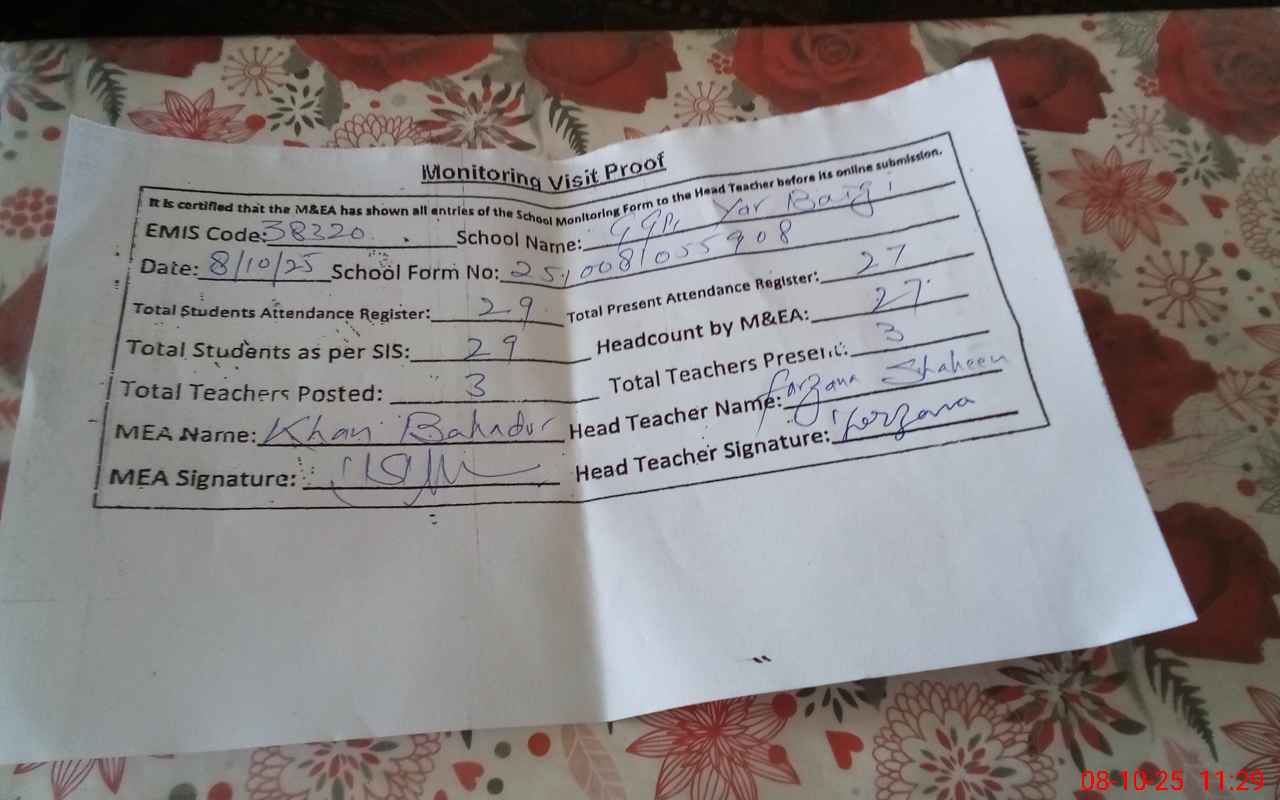 | EMIS Code: 38320718 | Name of School: GGPS YAR BAGI | |||