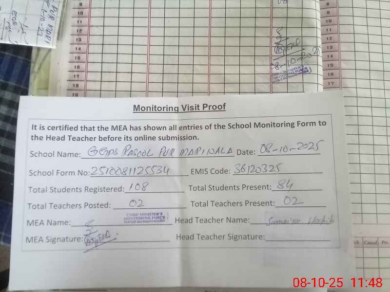 | EMIS Code: 36120325 | Name of School: GGPS RASOOL PUR MARI | |||