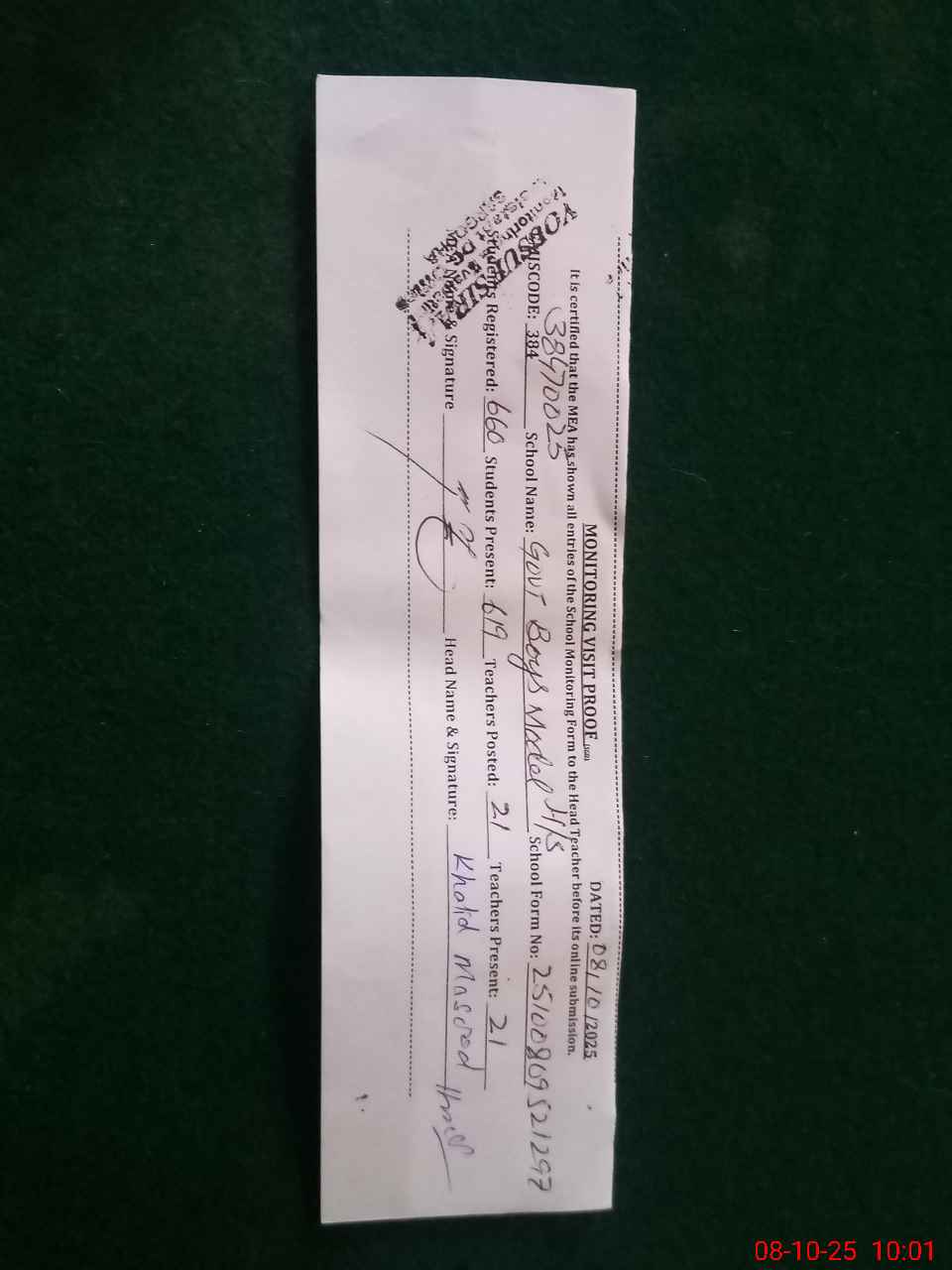 | Certified that this School was Inspected by the Undersigned MEA/DMO Today and the Information Stated Above is as Per Record. | |||||