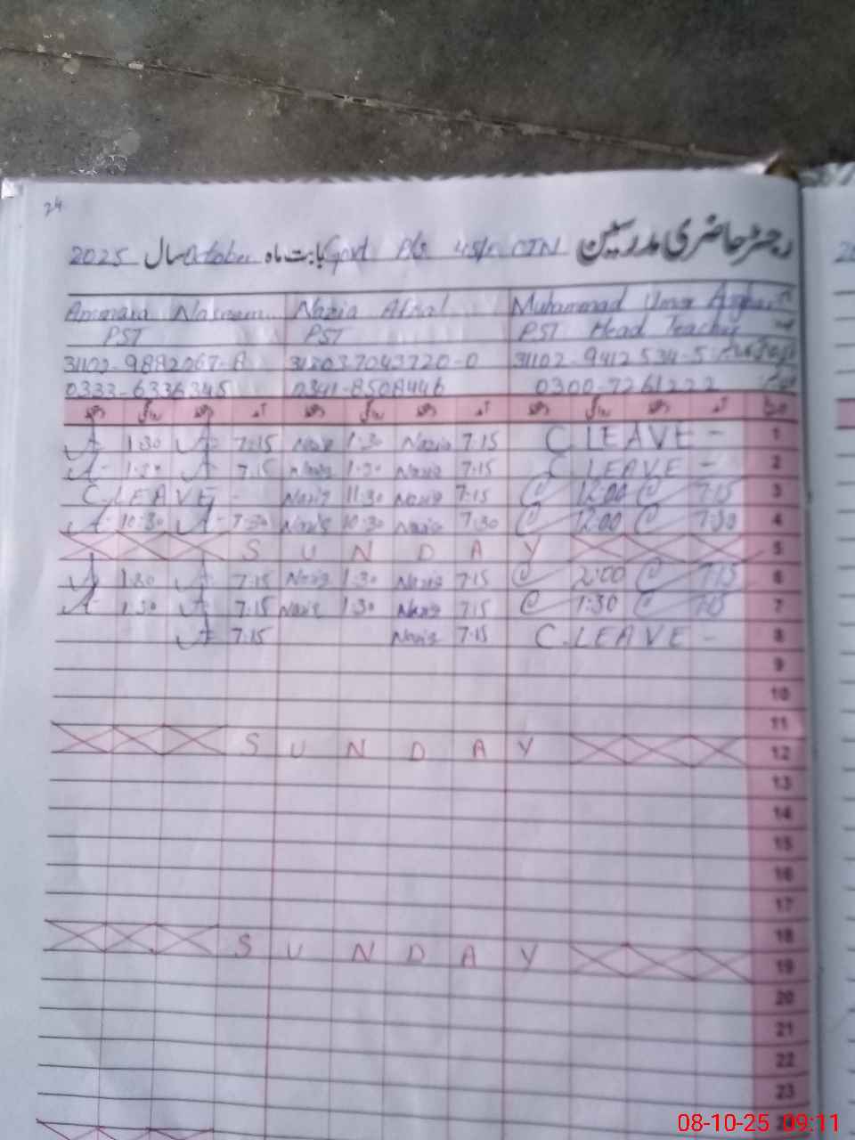 | Name: MUM**** AS**** Designation: (School Headmaster's/Headmistress's) PST Phone/Cell Number: 03**** |