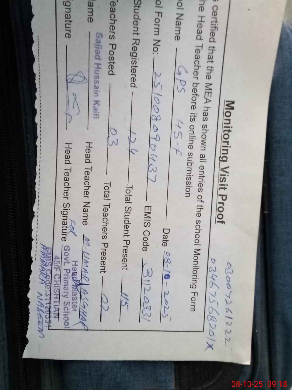 | EMIS Code: 31120331 | Name of School: GPS CHAK 45/F | |||