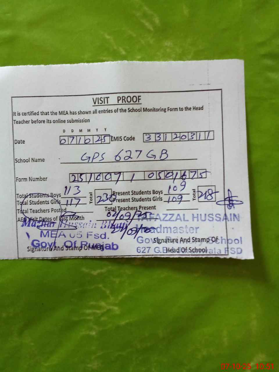 | EMIS Code: 33120311 | Name of School: GPS 627 GB DADU KA | |||