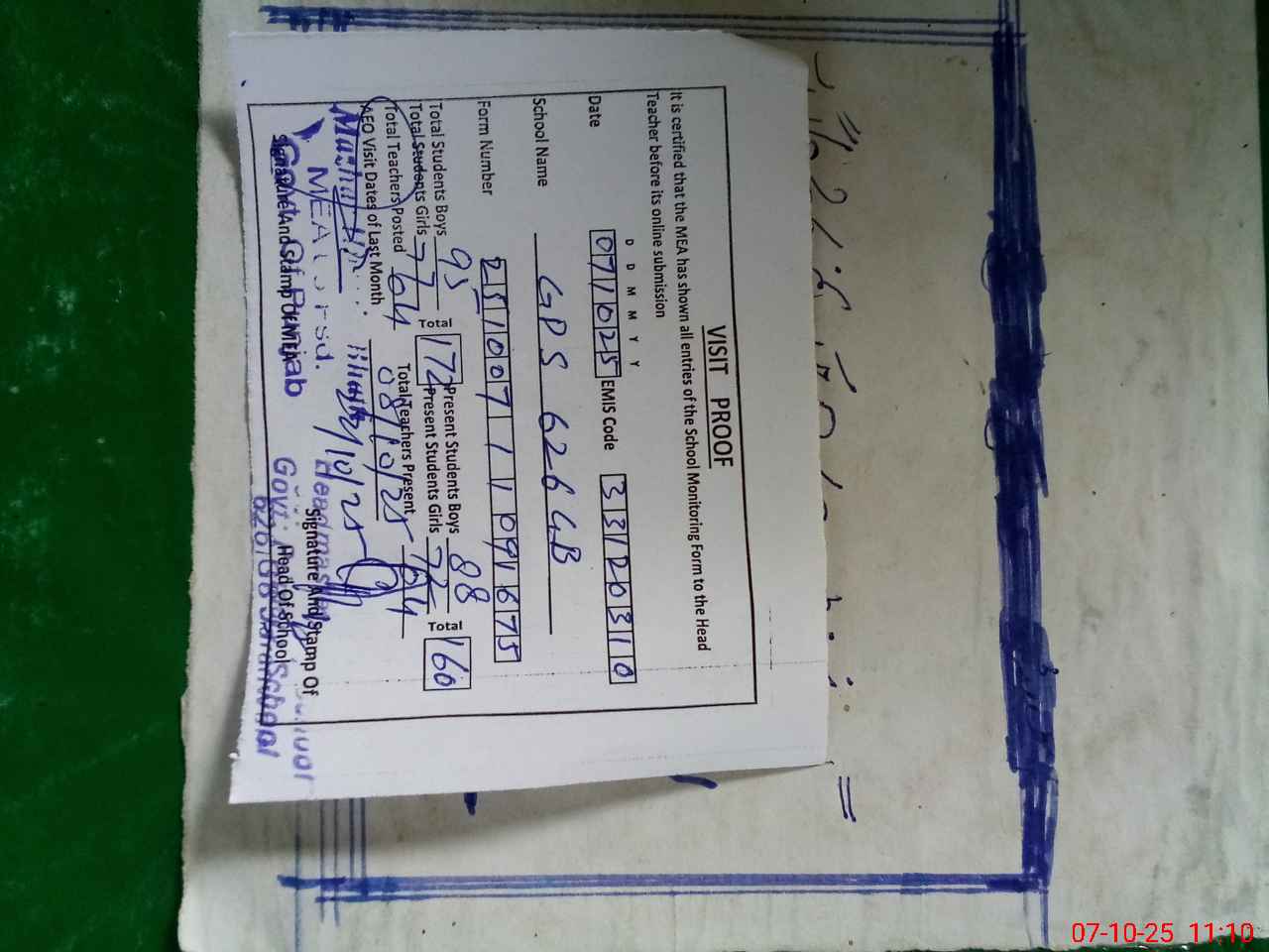 | EMIS Code: 33120310 | Name of School: GPS CHAK 626 GB | |||