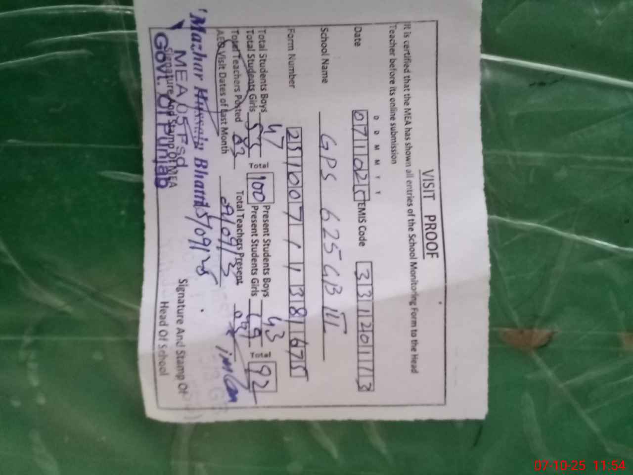 | EMIS Code: 33120113 | Name of School: GPS CHAK 625 GB III | |||