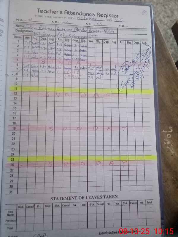 | Name: Fa**** Re**** Designation: (School Headmaster's/Headmistress's) SSE Science Phone/Cell Number: 03**** |
