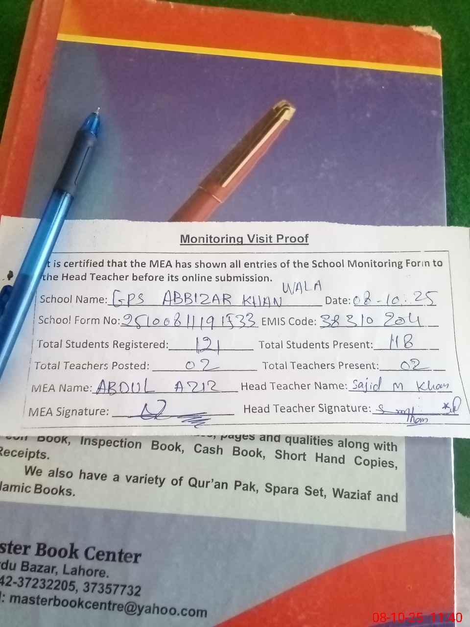 | EMIS Code: 38310204 | Name of School: GPS ABBIZAR KHAN WALA | |||