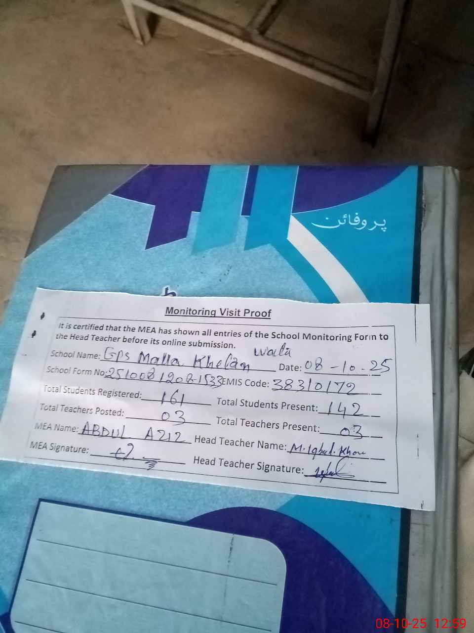 | EMIS Code: 38310172 | Name of School: GPS MULLA KHELAN WALA | |||