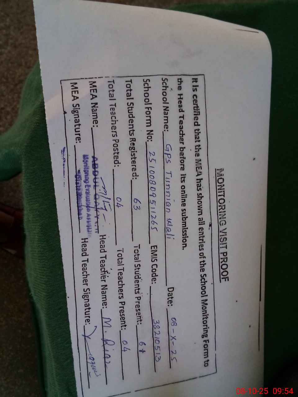 | EMIS Code: 38210513 | Name of School: GPS TUNNIAN WALI | |||
