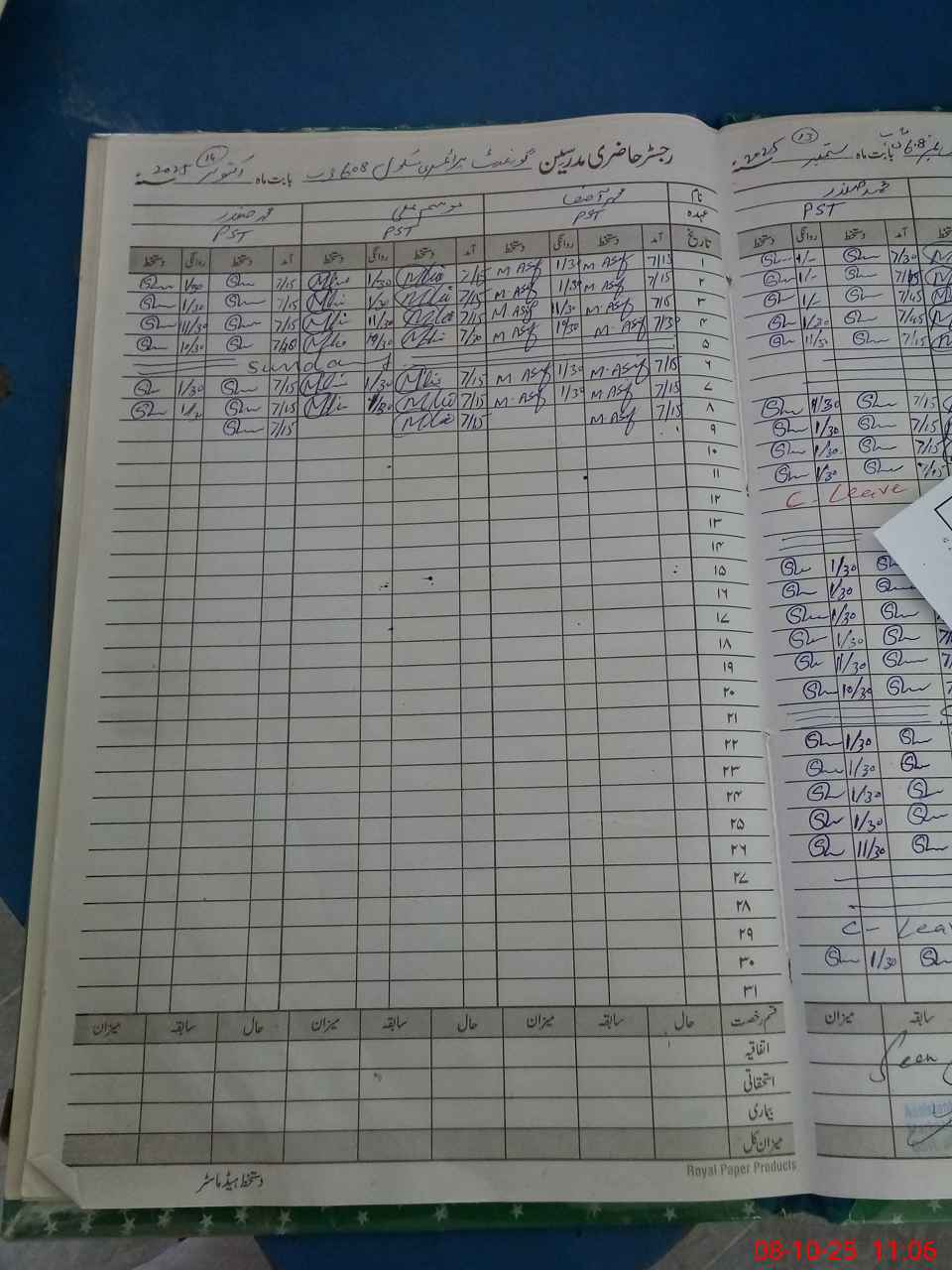 | 33**** | Mu**** Fa**** | ESE | Contract | 0 | 0 | 0 | 0 | 0 | 0 | 0 | 0 | 0 | Absent (Un-Authorized) |