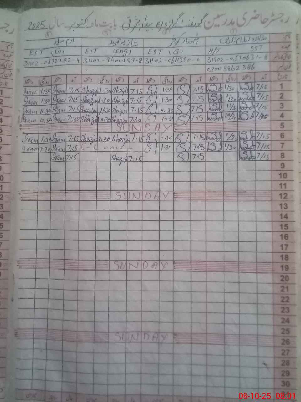 | Name: Sh**** Ni**** Designation: (School Headmaster's/Headmistress's) SST GEN Phone/Cell Number: 03**** |