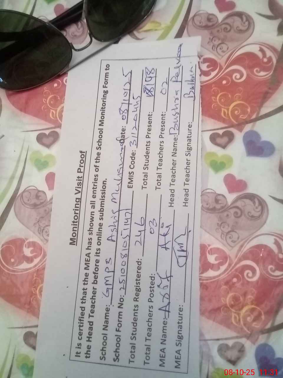 | Certified that this School was Inspected by the Undersigned MEA/DMO Today and the Information Stated Above is as Per Record. | |||||