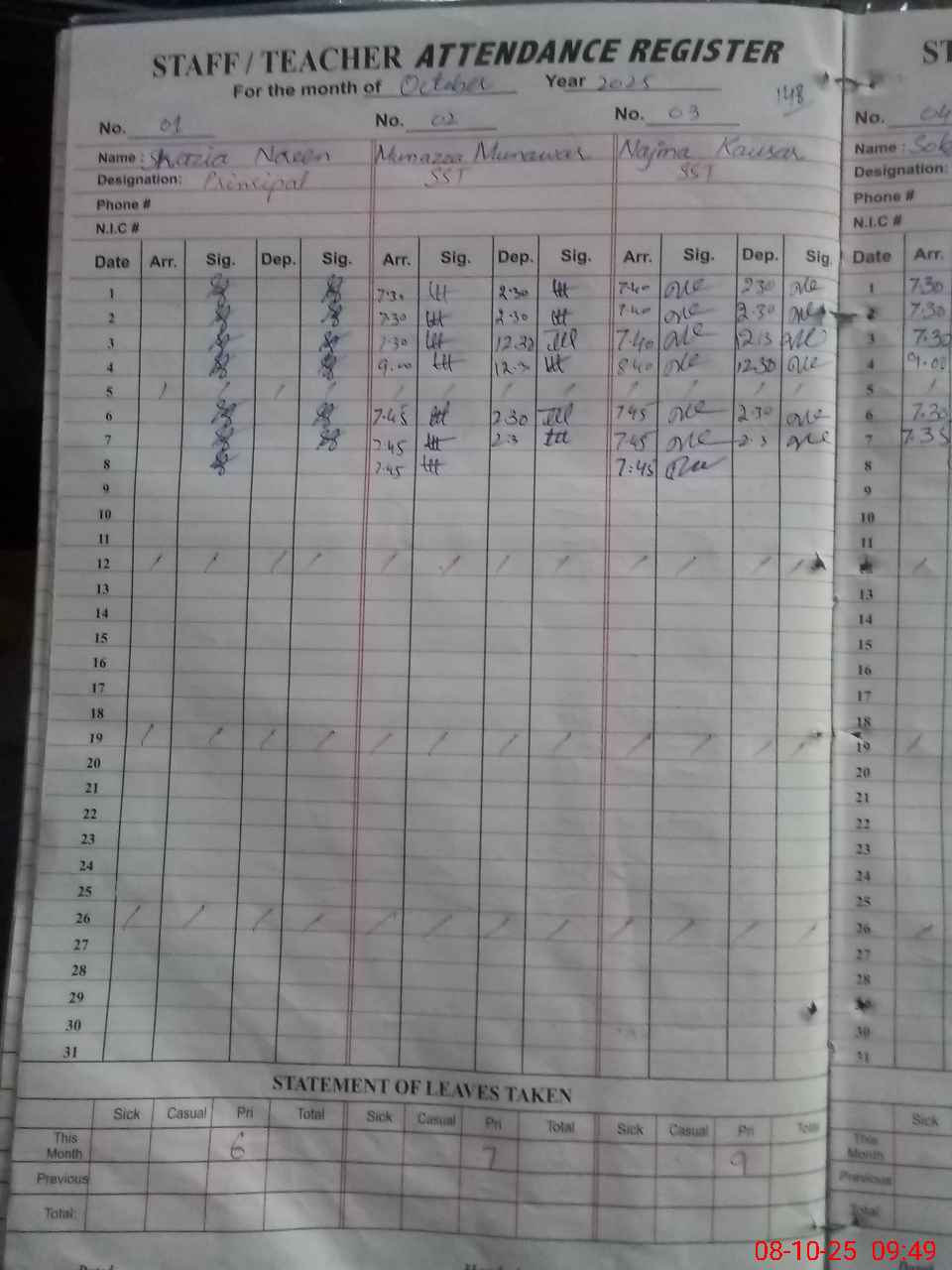 | CNIC | Full Name | Designation | R/C | Absence during last cal. month |