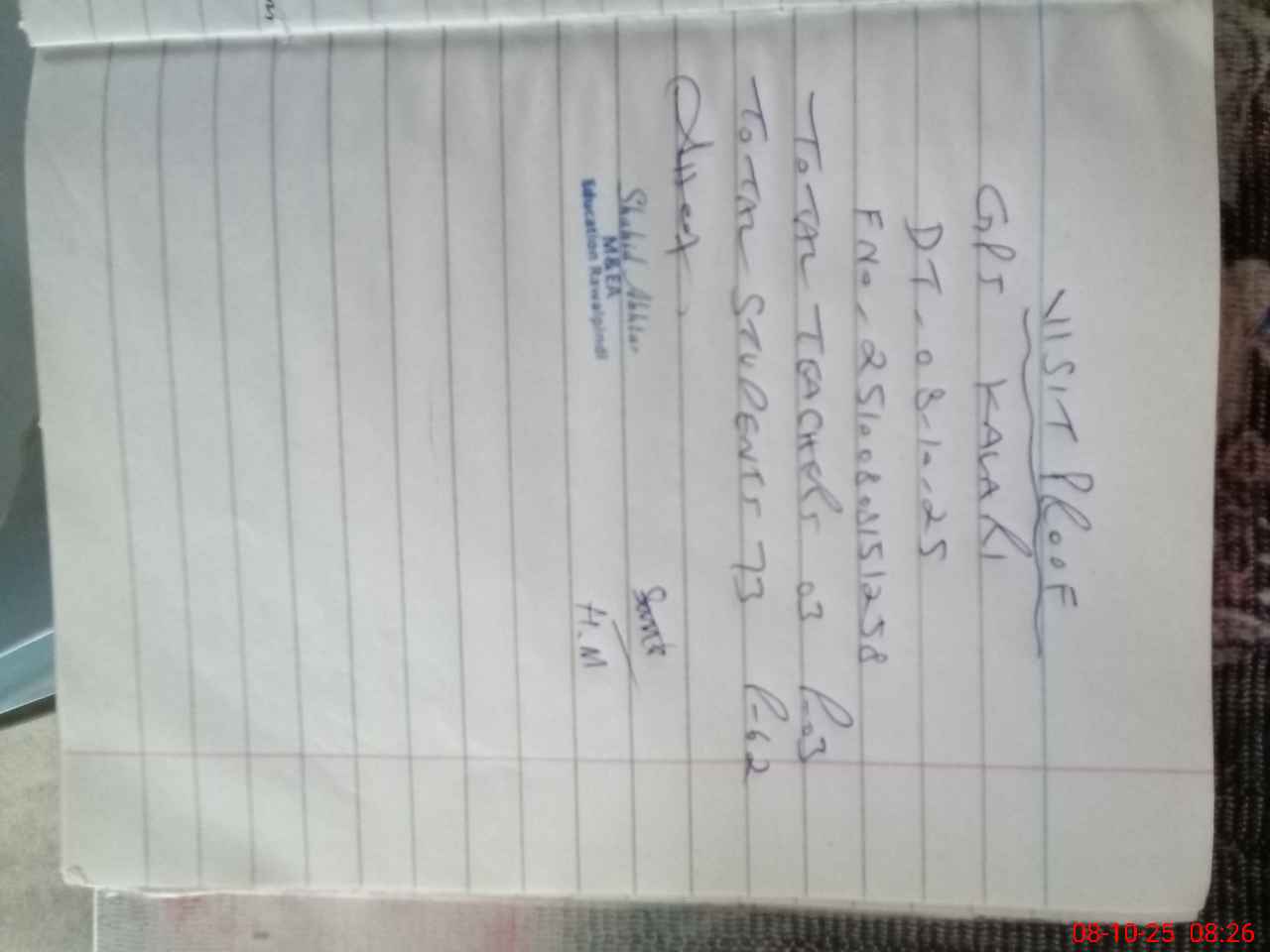 | Attendance Register | Head Teacher | MEA with School | Visit Proof |