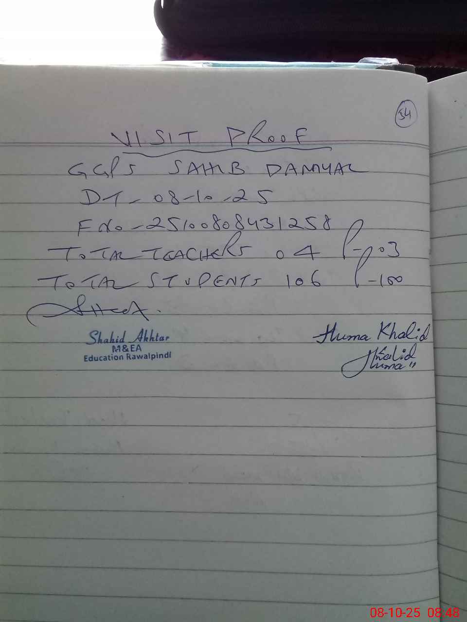 | EMIS Code: 37370425 | Name of School: GGPS SAHIB DAMYAL | |||
