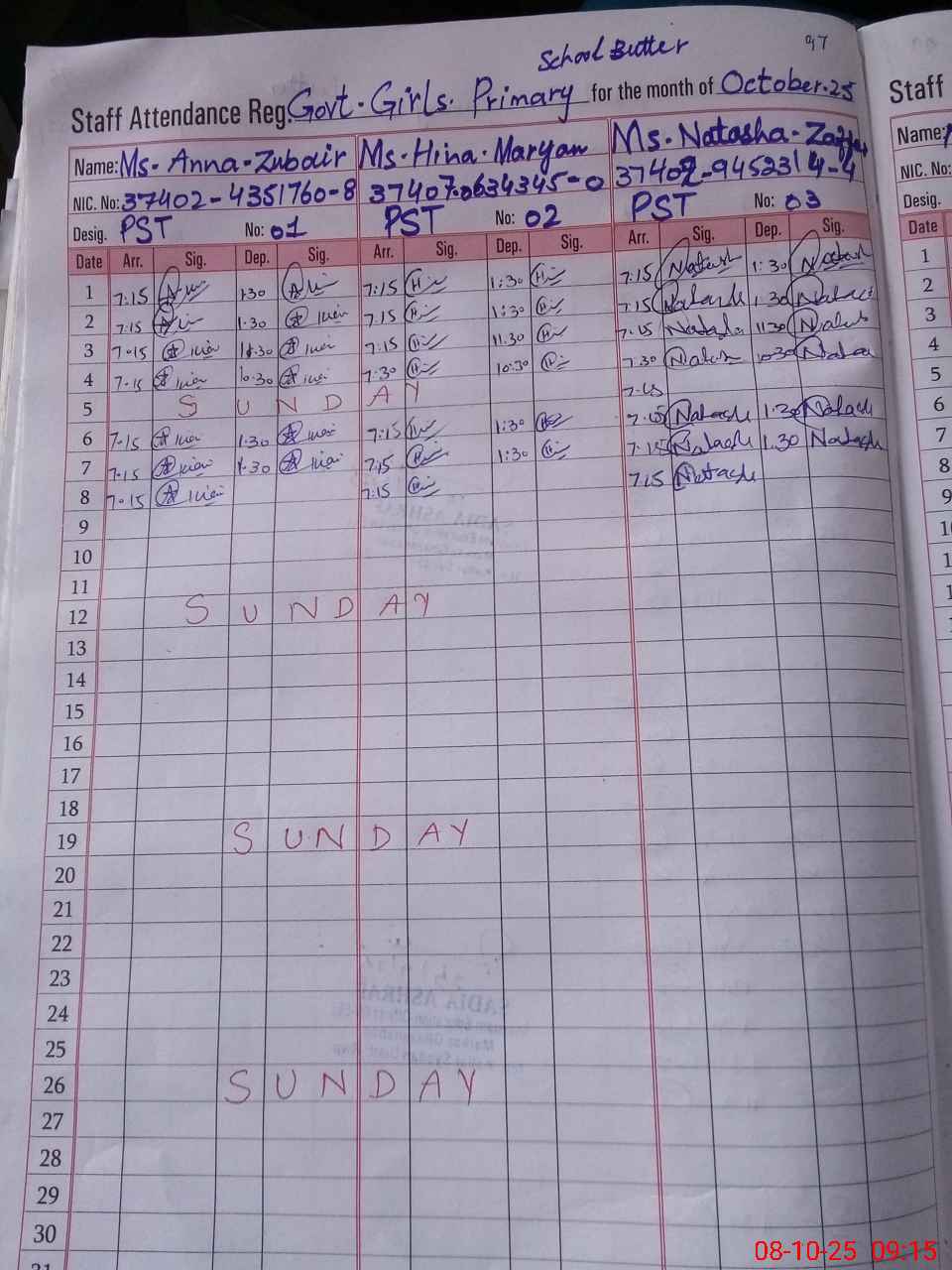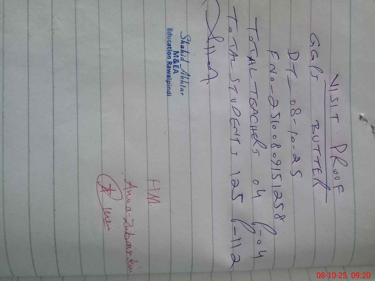 | Name: An**** Zu**** Designation: (School Headmaster's/Headmistress's) PST Phone/Cell Number: 03**** |