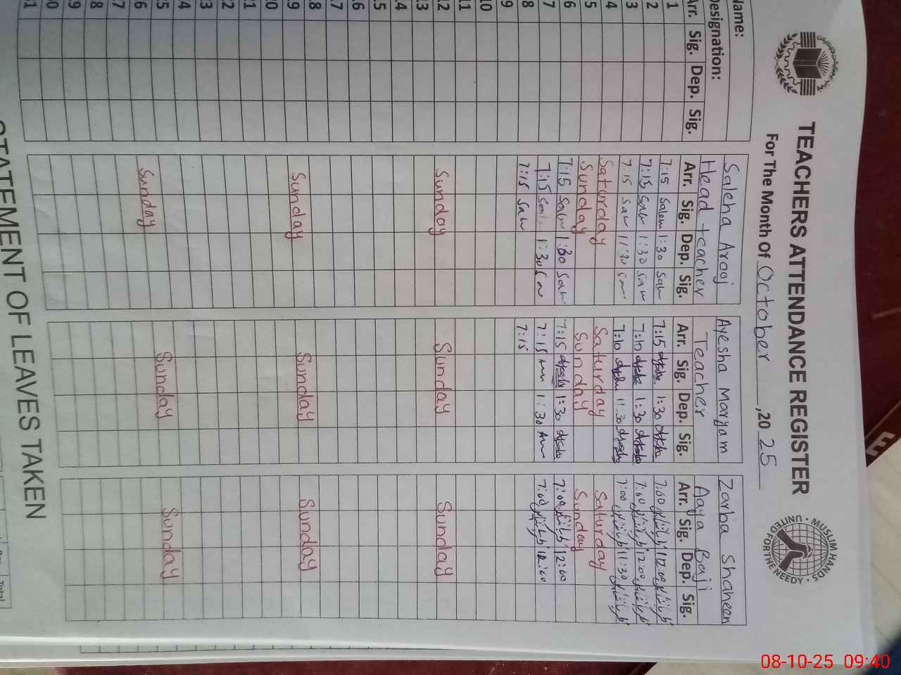 | Attendance Register | Head Teacher | MEA with School | Visit Proof |