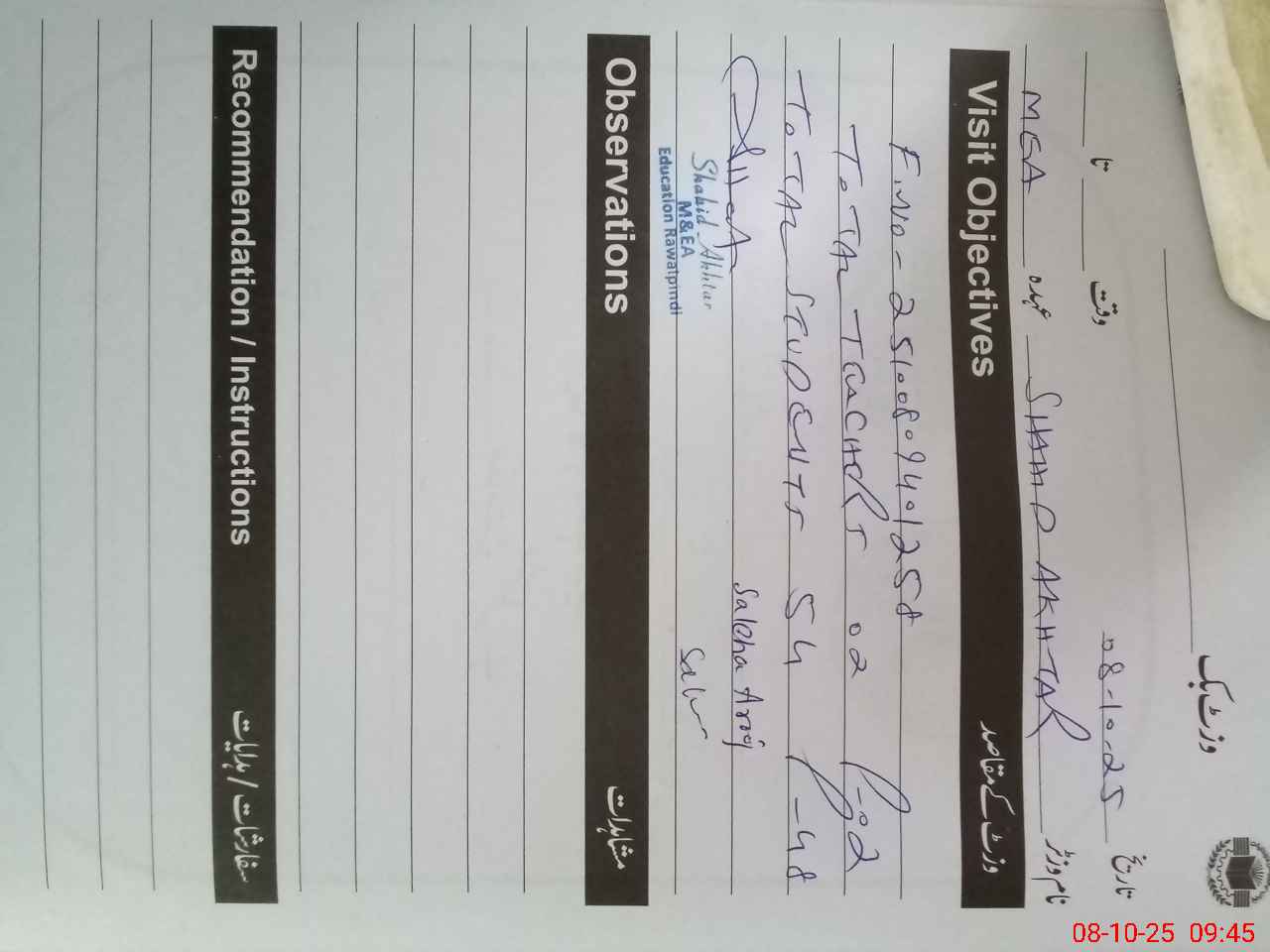 | Certified that this School was Inspected by the Undersigned MEA/DMO Today and the Information Stated Above is as Per Record. | |||||
